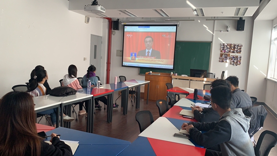 上午9点,党员们在士嘉书院“普朗特”空间,集中收看第十三届全国人大第二次会议开幕会直播,聆听李克强总理所作的政府工作报告。报告首先回顾了2018年中国各领域建设取得的成就,国内生产总值增长6.6%,总量突破90万亿元,城镇新增就业1361万人,农村贫困人口减少1386万……一个个数字象征着中国综合国力的提升,2018年政府工作报告中量化指标的一个个完成鼓舞着党员们。但是在取得瞩目成就的同时,报告还对2018年中国经济政治各领域存在的风险和问题进行了总结。接下来,报告提出了2019年政府工作的总体目标,国内生产总值增长6%-6.5%,城镇新增就业1100万人以上,调查失业率5.5%左右,登记失业率4.5%以内,居民消费价格涨幅3%左右……一连串量化指标的提出代表政府对人民许下的庄严承诺,也是全党全国各族人民为美好新生活制定的奋斗目标。报告最后为实现2019年度目标提出了若干具体的工作举措,一项项切实有效的措施为2019年政府工作指明了方向。在直播期间,党员们认真听,认真记,把握时代脉搏,明确目标方向,思考如何通过自己的实际行动为中国发展贡献一份力量。
