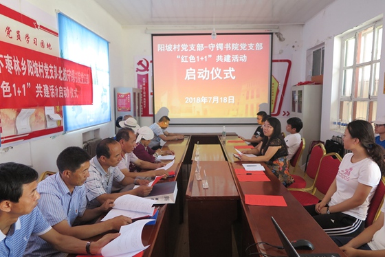 守锷书院党支部“红色1+1”共建活动启动仪式在阳坡村党支部党员活动室举行,共建双方党支部党员及入党积极分子共22人出席,启动仪式由阳坡村第一书记冯维成主持。