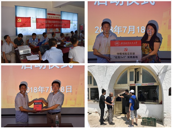 随后,双方举行了授牌赠书仪式,由党支部书记蒋茁同志和分团委书记韩庚同志分别向阳坡村党支部授予了“北京航空航天大学守锷书院党支部‘红色1+1’实践基地”牌匾和相关学习书籍。