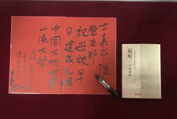 参观最后,全体党员在留言簿上留下了“砥砺奋进,空天报国,祝母校早日建成扎根中国大地的世界一流大学”留言并签下了自己的名字。