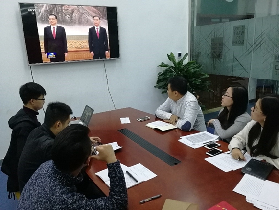 会后,党支部举行了第一次支部活动——全体党员观看了习近平同志在十九届中央政治局常委同中外记者见面会上的重要讲话,并组织党员学习讨论十九大报告。各位党员积极发言,分别在从严治党、青年发展、社会主义新篇章等多个十九大报告重点上发表自己的看法和理解,不时掌声响起。