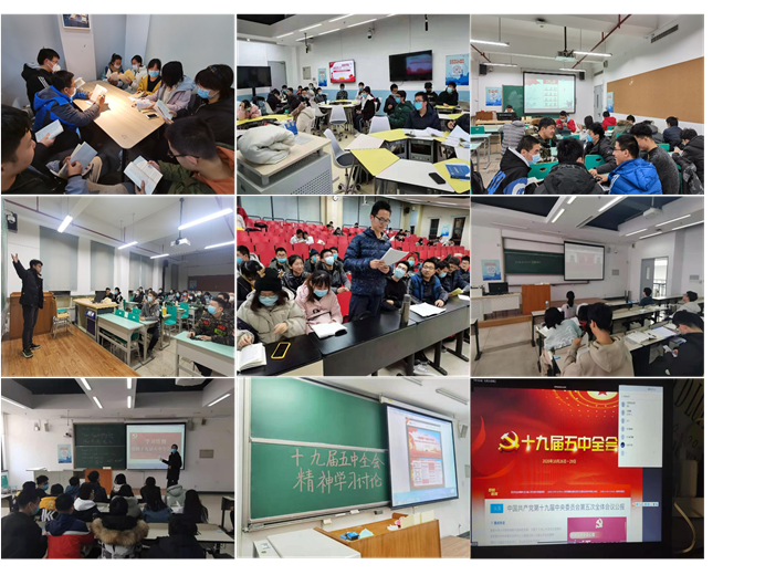 本次活动,各支部开展的主题有《学习全会精神,共筑强国之路》、《学习会议精神,争做践行先锋》、《学习十九届五中全会,聚力十三班蒸蒸日上》、《悟精神,担大任》、《回顾十九届五中全会,忆文化强国之魄》、《以青春创造 书写百年华章》、《开创新未来,创造新辉煌》、《奋进新时代 开启新征程》、《贡献青春力量,书写时代篇章》等。