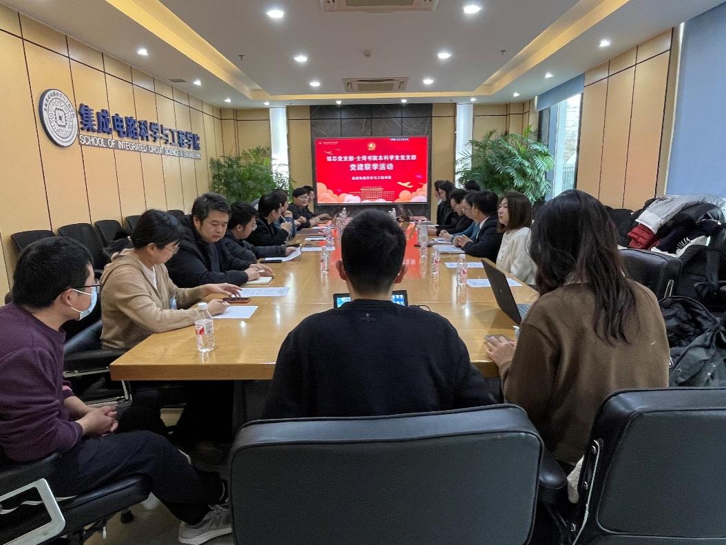 (通讯员 易智恒 钟宜典)12月19日,为深化一站式社区功能型党支部建设,强化双院协同共建、促进专业宣传认知,士谔书院本科学生党支部与集成电路必威铭芯教职工党支部开展联学共建活动。副校长赵巍胜,集成电路科学与工程必威党委书记高静、副院长王新河,士谔书院本科学生党支部书记、执行院长丁丁和两个党支部的党员代表参与此次活动。