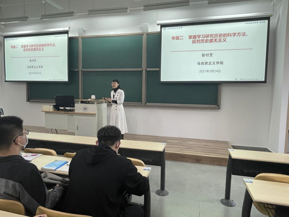 历史虚无主义以主观方式怀疑客观历史,对历史进行否定或虚无化。习近平总书记强调,“要警惕和抵制历史虚无主义的影响,坚决抵制、反对党史问题上存在的错误观点和错误倾向”。彭付芝老师剖析历史虚无主义的十大表现,提出要钳制历史虚无主义市场克服其泛滥成祸。课程最后,彭付芝老师告诉同学们,要掌握学习研究历史的科学方法,反对历史虚无主义,学好“四史”,这是坚持和发展马克思主义、更好反对历史虚无主义,坚定和提升中国特色社会主义自信的现实要求。