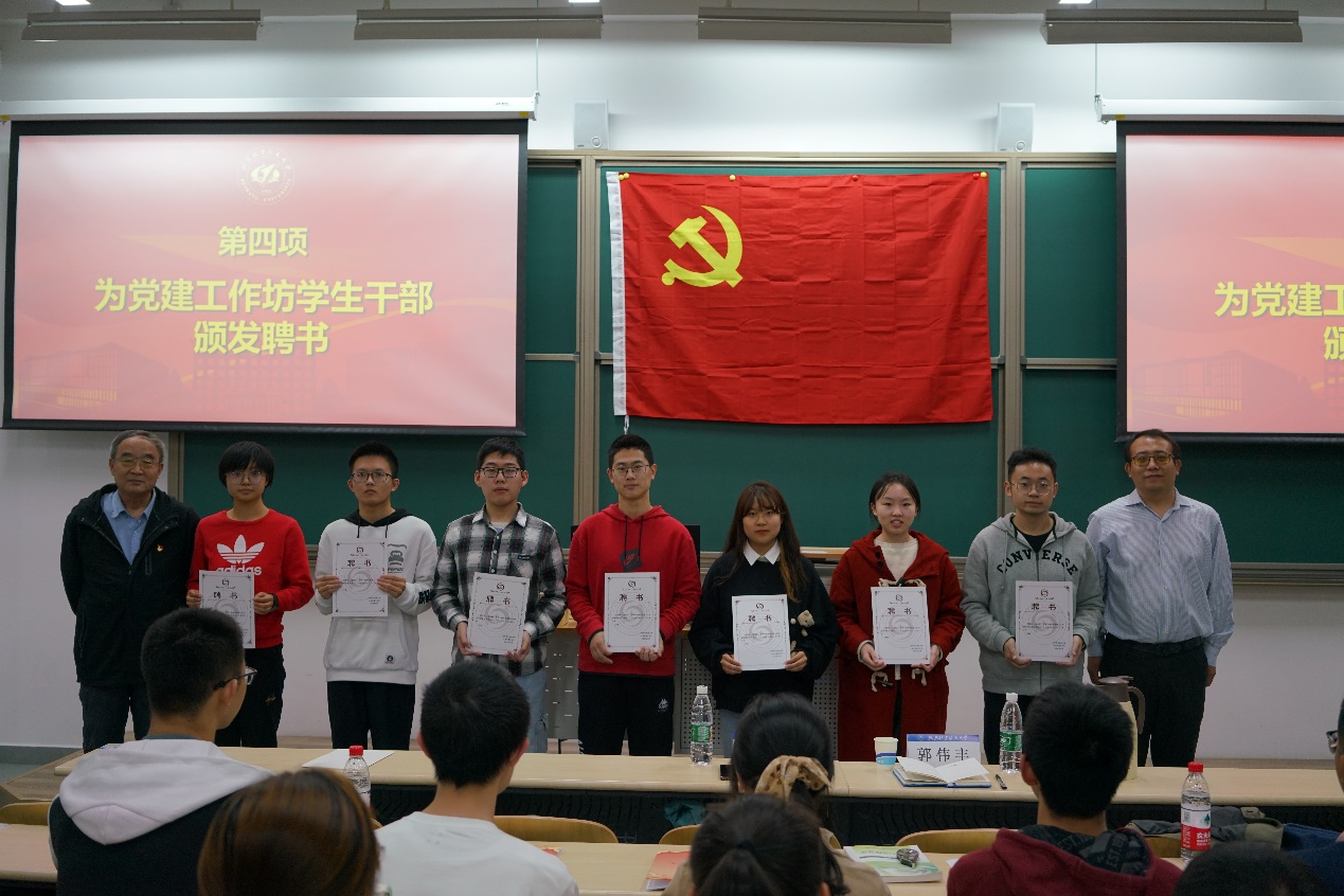 离退休教职工党委委员、原自动化科学与电气工程必威党委书记马军,执行院长郭伟丰为党建工作坊学生干部颁发聘书,随后各部门负责人介绍部门职责、党建工作坊活动开展形式与招新工作。