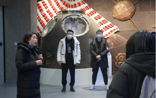 在展厅中,信息与电子技术研究室团支部宣传委员杨逸轩老师为到访的老师和同学们详细介绍了中国航天事业数十载的发展历程:从第一颗人造地球卫星“东方红一号”成功进入太空,到“神舟五号”顺利升空开启中国的载人航天历史;从“嫦娥一号”开启中国探月时代,到现如今“天问一号”开启了火星探测之旅。传源师生在参观中,对中国载人航天工程发展历程及所取成就有了更加深刻理解,学习了航天知识,了解了航天体系,更深刻感受了中国航天人用坚强意志铸就的航天精神。
