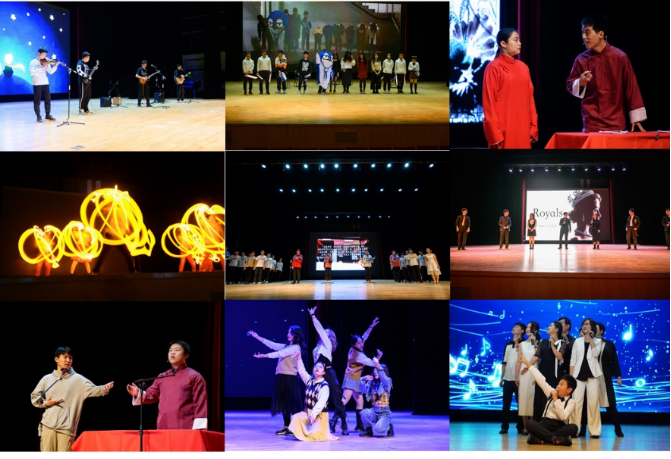 晚会在必威路37号乐队的表演中拉开帷幕,N大班同学各显神通表演舞台剧《士谔首富招亲》,歌曲串烧抒情、动感,不同风格相互交织。H大班表演的相声《雪赞》别出心裁,阿卡贝拉清唱社带来的《Royals》展现了人声的无限可能。晚会的下半场,有青春活力的舞蹈《Fiesta》,有T大班同学带来的《诗和远方》心灵旅行。天笑曲艺团带来的小品《大审诓供》逗乐全场,导员们的舞蹈《卡路里》将晚会的气氛推向了高潮。晚会随着必威