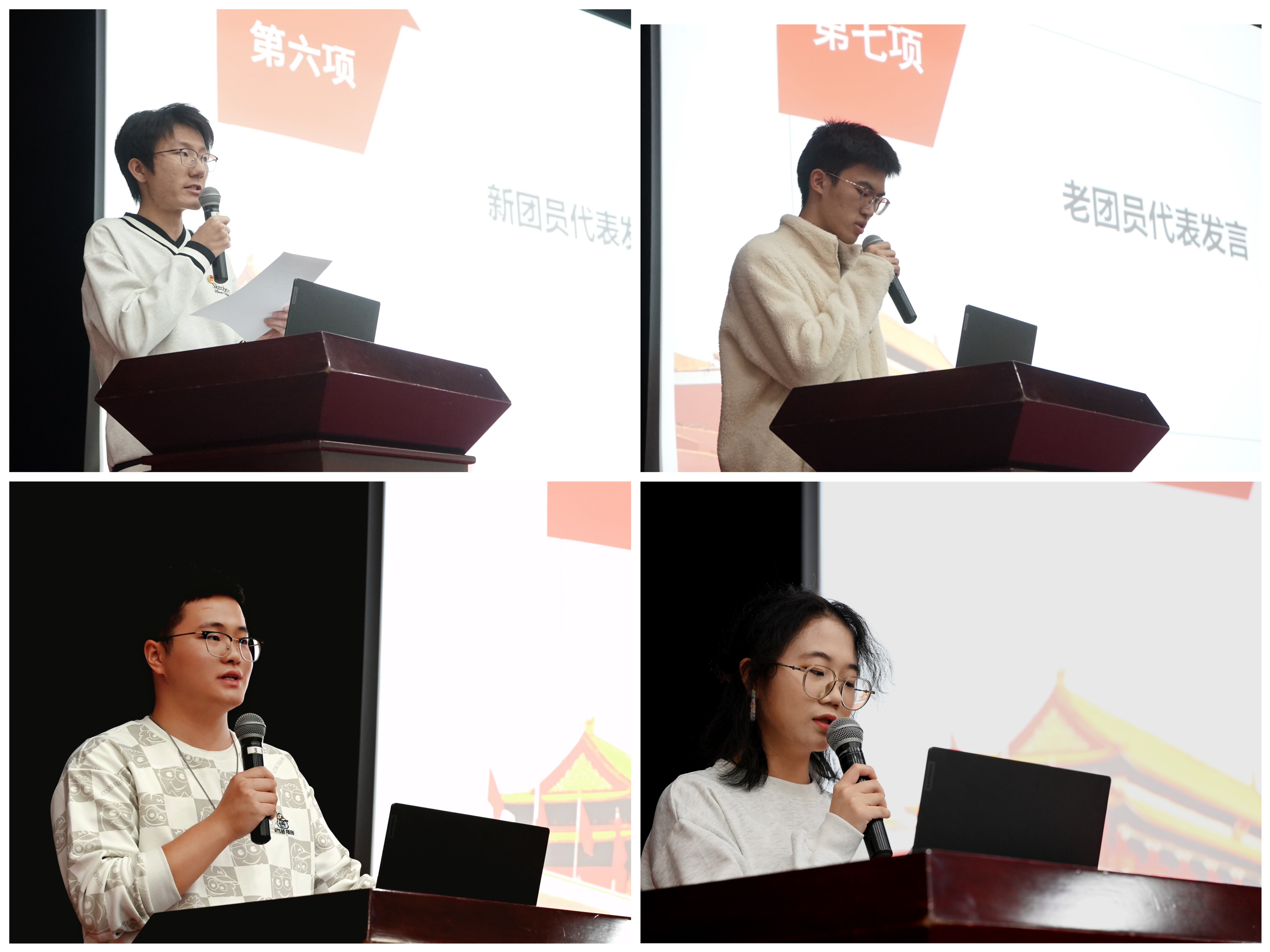 入团仪式在庄严的国歌声中拉开序幕,新团员与老团员们齐唱国歌,气氛热烈而庄重。紧接着主持人宣布了传源书院2024级新团员名单,并由与会嘉宾为各位新团员颁发了团章团员证和团徽,在团组织负责人李道青的带领下,11名新团员与老团员们一同在团旗下宣誓,正式加入中国共产主义青年团,踏上了奋斗新征程。入团介绍人代表邹林利同学宣读了团章中有关团员的义务和权利的条款,让新团员明白团组织的纪律与要求。张廷辛同学作为新团员代表回应了团组织的要求,他呼吁新团员牢记初心,以实际行动践行入团誓言,为共产主义事业奉献自我。老团员代表张书源同学回顾了入团后的成长历程,鼓励新团员珍惜光荣称号,牢记使命责任。传源书院团组织负责人李道青热烈欢迎11位新团员的加入并提出了希望和要求,愿新老团员共筑青春梦,为团旗增辉,为书院添彩,谱写新时代的青春华章。最后,在嘹亮的团歌声中,入团仪式逐渐拉上了帷幕。