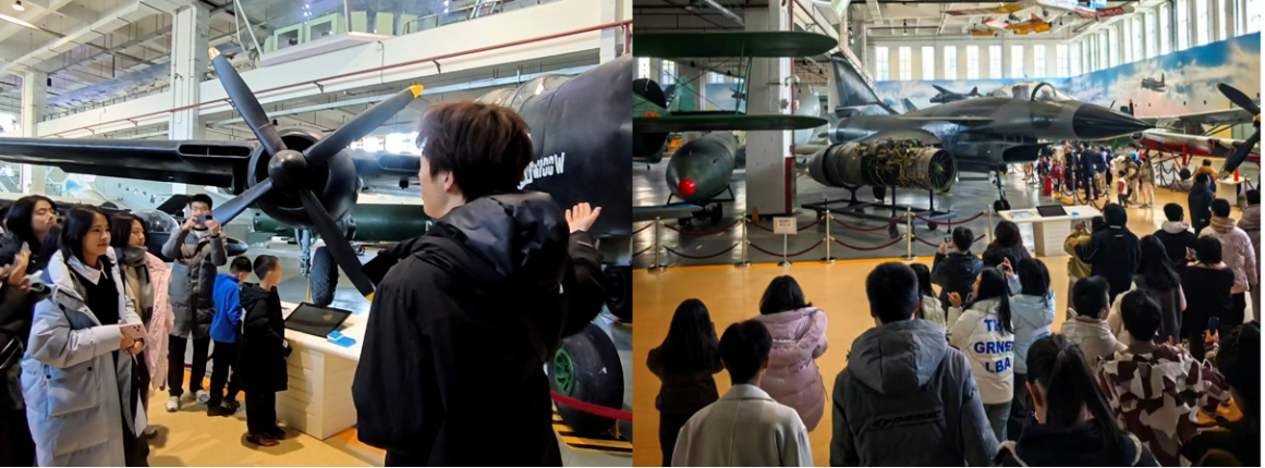 航空博物馆。在一架架承载时代记忆的飞机前,在一段段记录科技突破的历史中,同学们沉浸式回顾了我国航空航天事业的奋斗征程,深入了解了我国航空航天事业的发展成就。