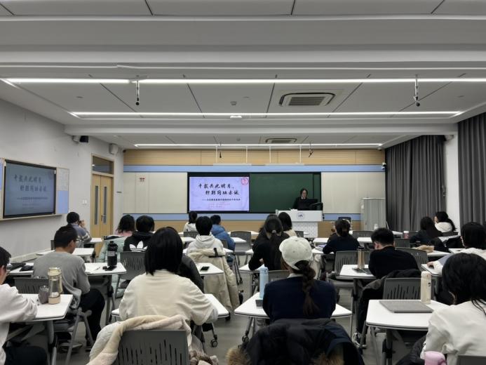 (通讯员 李子晗 金珍如 隗枚卿)12月23日,知行书院“赤心思政宣讲团”开展“千载共此明月,肝胆同映赤诚”主题宣讲活动。宣讲团成员戴博悦聚焦“月”这一中华文化意象,以诗词为媒、时代为景,通过意象鉴赏和互动导学相结合的方式,引导学生在文化溯源中筑牢信仰根基、涵育家国情怀。