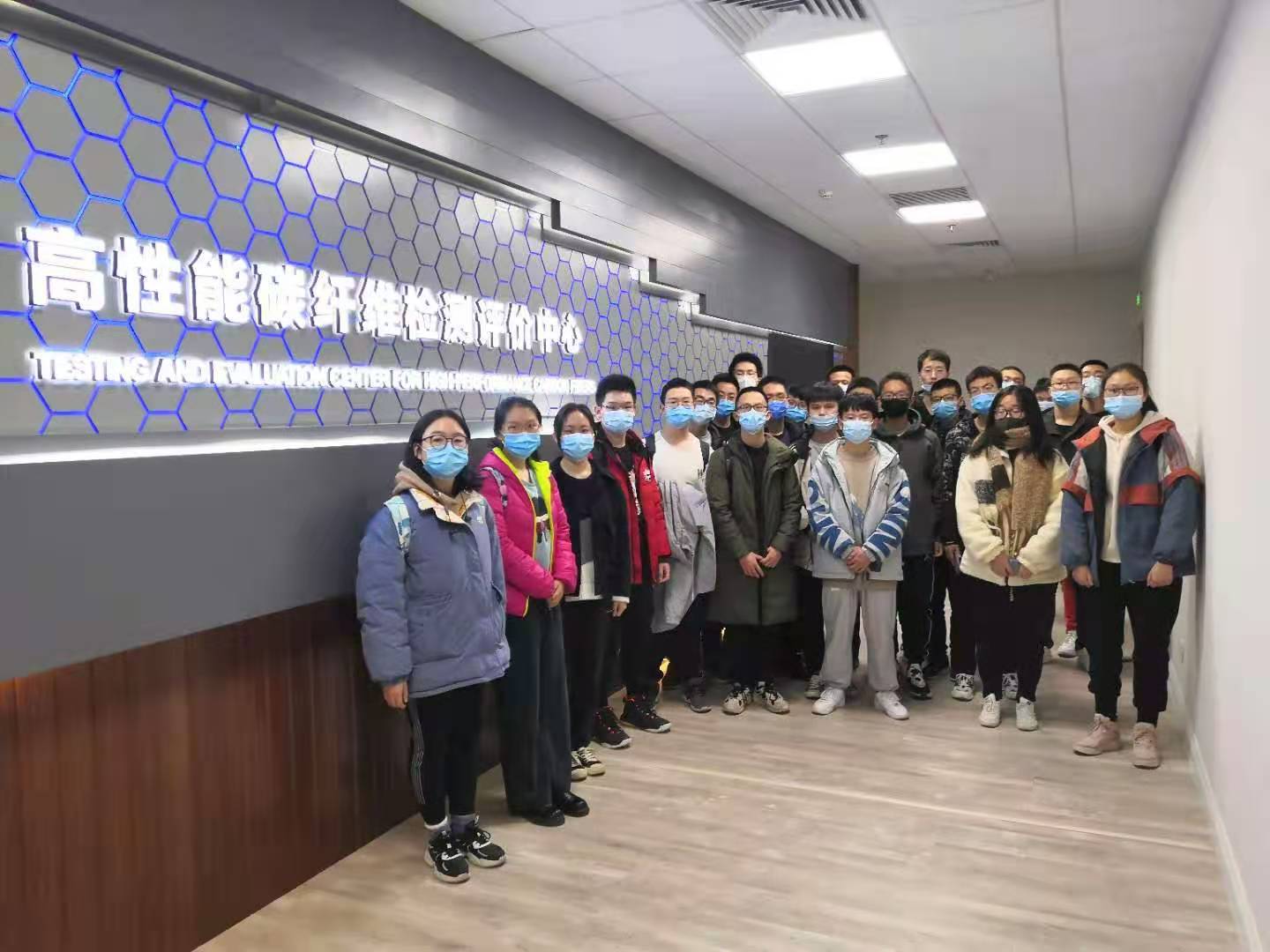 而后,各位同学走进了碳纤维中心,在这个实验室,有着前沿的实验设备,并具有对碳纤维进行质检的资质。导师为同学们讲述了高性能碳纤维检测评价中心的功能,同时还介绍了很多有关碳纤维的精密仪器设备,在这些实验室实地参观后,同学们不仅对于仪器原理等产生了很大兴趣,也对于国家对碳纤维这一前沿领域的重视程度有了深刻的了解。在军用领域,碳纤维材料严格控制进出口,这也使得这项技术的重要性尤为突出。也正因如此,碳纤维中心的制造、评估能力才显得如此不可或缺。在这一部分的实地参观中,每位同学都了解到了有关碳纤维的专业知识,从而对进一步学习这一学科产生了强烈的期待。
