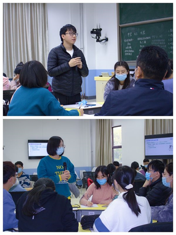 针对以上问题,同学们进行了热烈的分享交流。李玉尧同学以高数学习为例,认为可从“兴趣培养”和“技巧寻找”两方面对待数学学习,提高对课本例题与课后习题的重视程度,巩固好定义等基础知识。白佳毓同学提议同学们可以通过扎实做好课前预习以提高课堂听课效率。