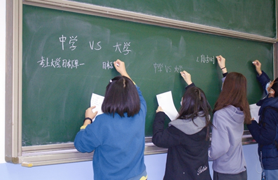 主题班会以同学们的热烈讨论开场,同学们分成四组,结合自身体验讨论大学学习与高中相比的变化,并上讲台展示。大学学习与高中不同,就学习目标而言,大学的目标更加多元,而非高中时单一的“好好学习,天天向上”;就学习内容而言,大学的课程更加丰富,而非高中时固定的科目、熟悉的习题;就学习方式而言,大学的时间更加自由,而非高中时教室、食堂、宿舍三点一线,每日按部就班的学习……无论是学习目标、学习内容还是学习方式的转换,对于同学们来说都是不小的挑战。