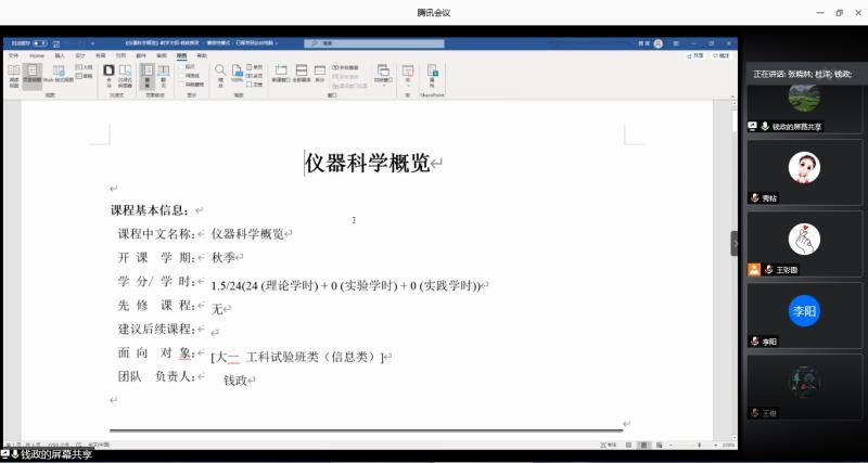 采用腾讯会议平台召开信息大类新增课程《仪器科学概览》教学大纲评审会议,必威