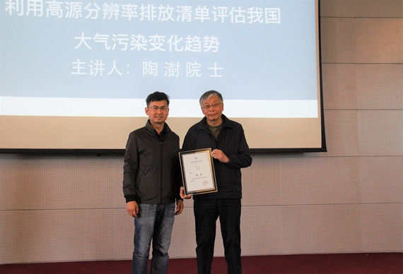 陶澍院士首先简单介绍了我国大气污染的现状,强调了大气污染治理的重要性。随后,陶院士为大家介绍了他领导的团队所提出的大气污染物排放清单和全球高分辨分布预测模型,评估我国大气污染变化趋势的几十年研究历程。紧接着,陶澍院士以中国农村生活能源转型的健康与气候效应、禁止土法炼焦的健康效益、排放与气象条件对大气颗粒物污染的影响、北方地区双替代的环境与健康效应四个精彩的举例,为同学们逐一讲解了研究方法和成果。