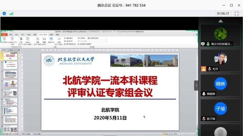 常务副院长曹庆华主持,来自我校以及清华大学、北京大学、北京外国语大学、华北电力大学等的19名评审认证专家及教学工作部全体人员参加了本次会议。