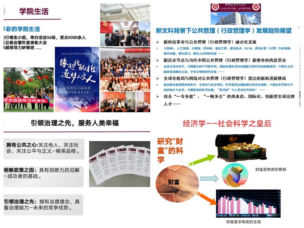 而后,两位系主任沈映春、涂晓芳老师分别对及经济学和行政管理学的专业情况做了进一步补充介绍;陈文博老师也结合自身的学习和教学经历表达了对行政管理学科的热爱,他认为,行政管理学科是一门多元和包容的学科,有利于培养同学们对祖国的大爱、心怀天下为公的宏大格局。