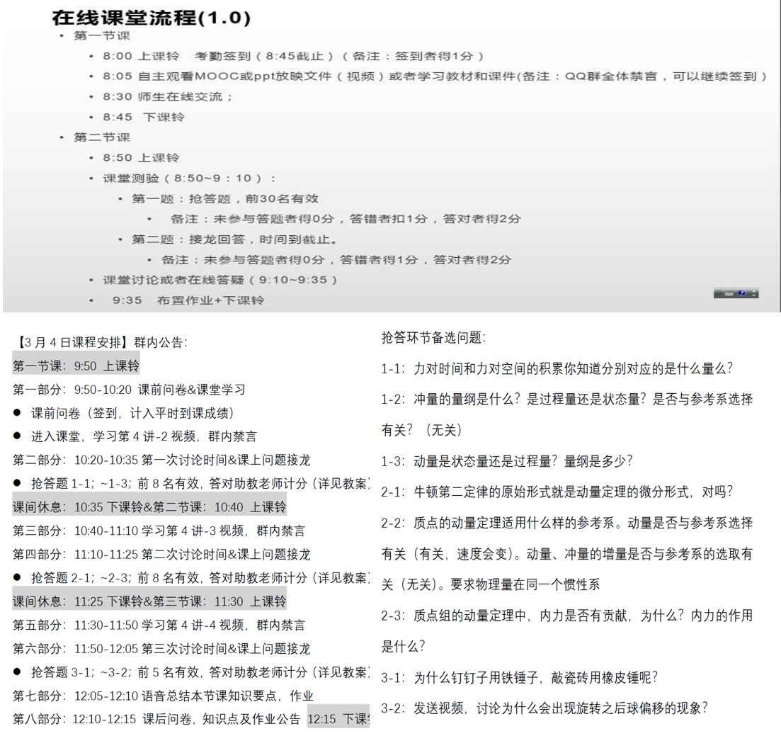 在线课堂流程及部分课上讨论题目(资料来源:苟成玲老师、金硕老师)