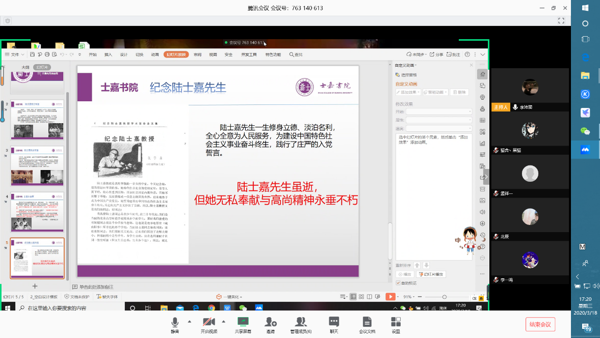 梦拓小组首先线上集体参观陆士嘉网上纪念馆,学习陆士嘉先生的优秀事迹、观看陆士嘉先生的珍贵影像材料,从生动的故事中感悟陆士嘉先生的大师精神和大爱文化。随后,梦拓小组通过开展陆士嘉线上故事会,让同学们讲述心目中记忆最深的陆士嘉故事,以此表达对陆士嘉先生的崇敬之情。在活动中,梦拓充分带领同学们积极讨论,使得参与活动的学生收获颇丰。