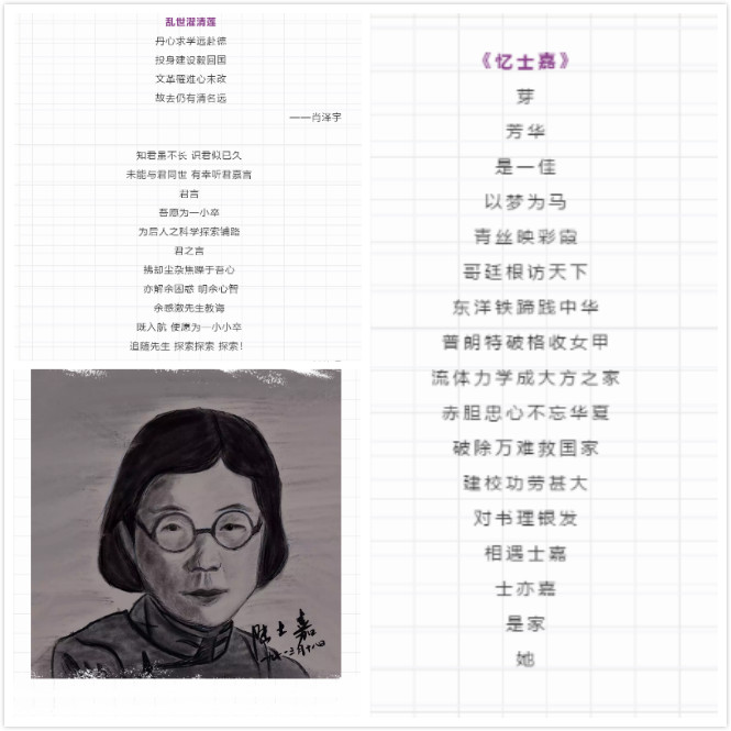 另外,一些梦拓组还充分调动组员的积极性,开展了形式多样的特色活动。197514班的梦拓组结合自身特点,通过“行者嘉士”实践队的实践宣讲,展示实践采访见闻,直观地展示了士嘉学子将陆士嘉精神践行到学习生活中的良好风貌;部分梦拓组组织有特长的学生通过绘画和诗歌形式来表达对陆士嘉先生的纪念之意和崇敬之情;197523班的梦拓组在纪念活动结束时一起为陆士嘉先生录制了祝福视频。