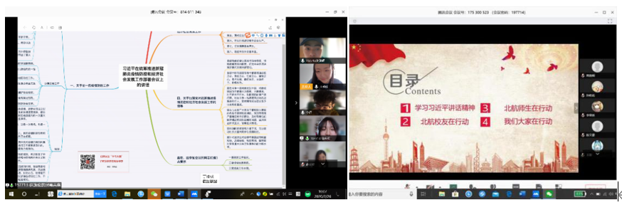 青春战疫,线上团日共研习。为增强青年团员的爱国意识和责任意识,坚定信心,充分展现全体青年团员齐心战“疫”的精神风貌,各团支部于2月26日和3月11日下午利用腾讯会议线上平台开展了第一次和第二次主题团日学习活动。以深入贯彻“习近平总书记在统筹推进新冠肺炎疫情防控和经济社会发展工作部署会议上的讲话”和学习讨论思政大课及疫情防控公开课为重点,由各团支部团支书等负责人深入讲解、同学们深入学习和理解了相关会议精神。