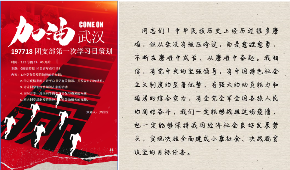 最后,各团支部以自己的方式对武汉、中国乃至世界送出了祝福。