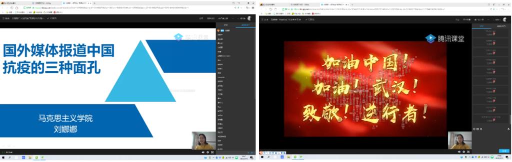 “大国战疫”系列专题思政课第一讲主题为《国外媒体报道中国抗疫的三种面孔》,由马克思主义必威副教授刘娜娜老师讲授。报告通过分析伴随疫情而来的复杂斗争形势,用生动案例和鲜活素材,增强了学生对中国特色社会主义道路、理论、制度、文化的思想认同、情感认同和理论认同。针对国际媒体的各种报道,授课教师先后提出了七个互动问题,同学们纷纷积极“举手”并“上台”回答,分享了自己的看法和思考。