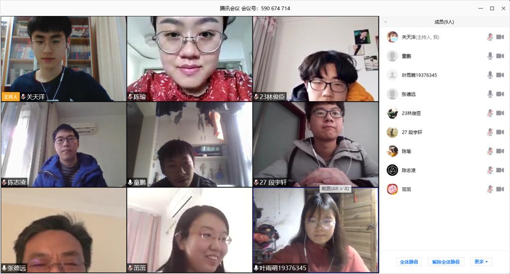下午四点,张德远、王少萍、李广玉携书院执行团队与书院在武汉的同学取得了联系。视频连线中,领导老师们关切地询问了同学们的居家近况,并对同学们的学业和未来规划进行了指导。