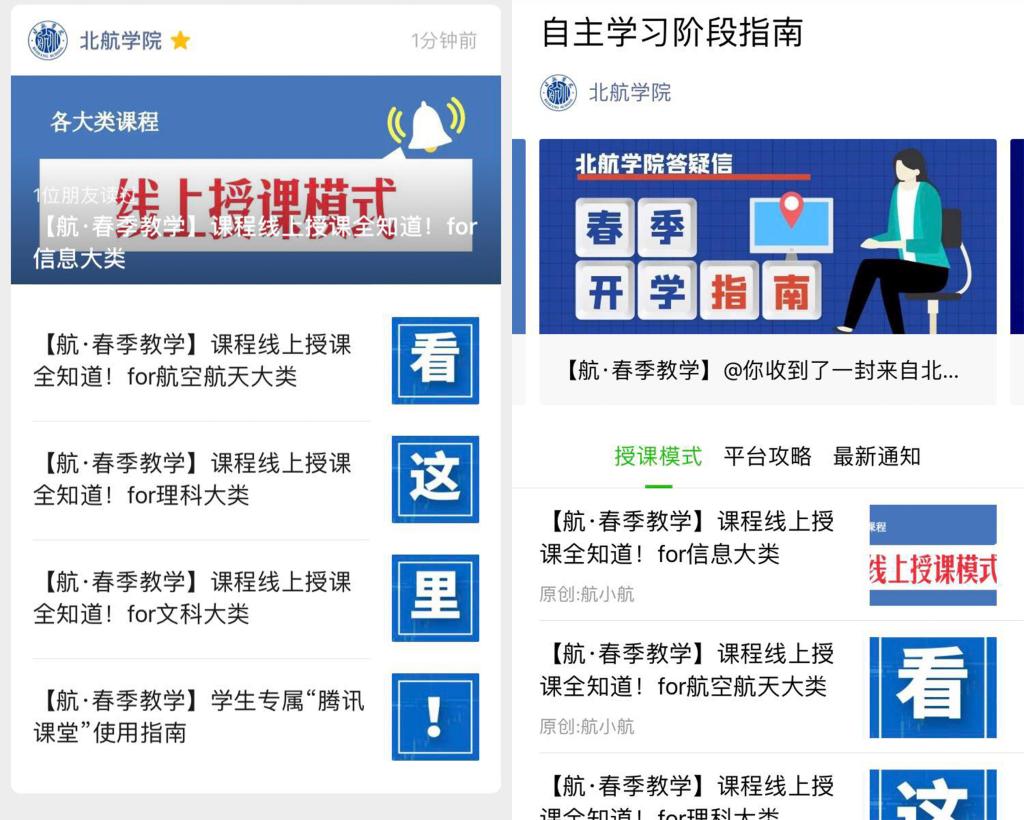 有着巨大的挑战。教学工作部骨干新建了一个“抵抗疫情、保障教学”的微信群,结合疫情情况讨论必威教学工作方案。随后,教务老师们全体投入战斗,每天十几个小时为线上教学的顺利运行做准备,制定必威延期工作方案、试用各种教学平台、在腾讯课堂创建260多门课程、为教师提供一对一帮助等等,她们说“保障教学顺畅,是我们能做出最好的贡献”。为了让每个同学都获得准确信息、少走弯路,教学管理团队想了很多办法,如:为每个大类的学生分别制作了春季学期教学情况介绍的视频,在线答疑为学生解惑;必威官方公众号总编辑张雪和教学秘书和佩佩、童玲欣、王彩霞等带领“航小航”团队,开创了“自主学习阶段指南”专栏,为同学们提供及时、准确、全面的一站式服务。