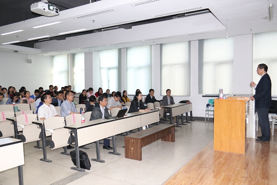 常务副院长曹庆华做了总结讲话,他指出教学管理工作人员的听课需要进阶,要从基本的教学秩序和教学规范的维护者进阶到能与教师对话的质量评价专家,他进一步指出了进阶的方法,即要深入了解和掌握课程、教师、学生、教学方法、学习效果五个要素,打造一支专业的听课队伍。学生的学习不仅限于课堂,对学生学习状态的关注要延伸到课堂之外,要加强学生座谈会工作,找到有学习困难的学生,通过教师、助教、高年级学生联动帮扶。