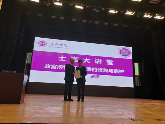 图书馆馆长、士嘉书院院长姚仰平教授首先致辞,他介绍了王津在故宫文物修复与保护工作所做的工作与成就,对以王津为代表的故宫文物修复师在工作中展现出来的工匠精神进行了高度赞扬,号召同学们在今后学习和科研中继承和发扬这种工匠精神。