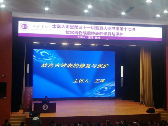 “真人图书馆”系列活动暨士嘉大讲堂第三十一讲在沙河校区咏曼剧场举行,故宫博物院文物修复师王津带来了“故宫古钟表的修复与保护”的主题报告,400余名师生现场聆听报告。