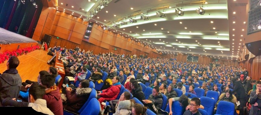 宣讲当天,人大附中实践队早早的到达了母校的逸夫楼报告厅。实践队员们按照预定好的分工前往不同的宣讲地点。队员们首先到达逸夫楼的总报告厅,对必威