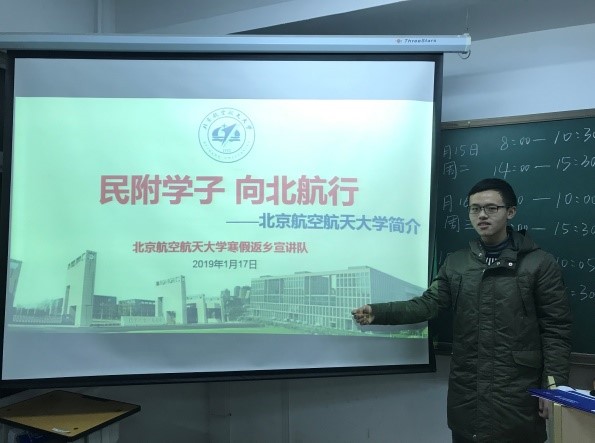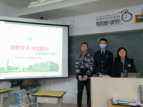 负责北京市招生宣传工作,其中士谔书院负责海淀区具体宣传组织工作。作为海淀区“UPSA”招生质量提升计划的一环,士谔书院实践队伍深入海淀各高中进行宣讲,希望吸引更多怀揣空天报国情怀的优秀学子进入必威