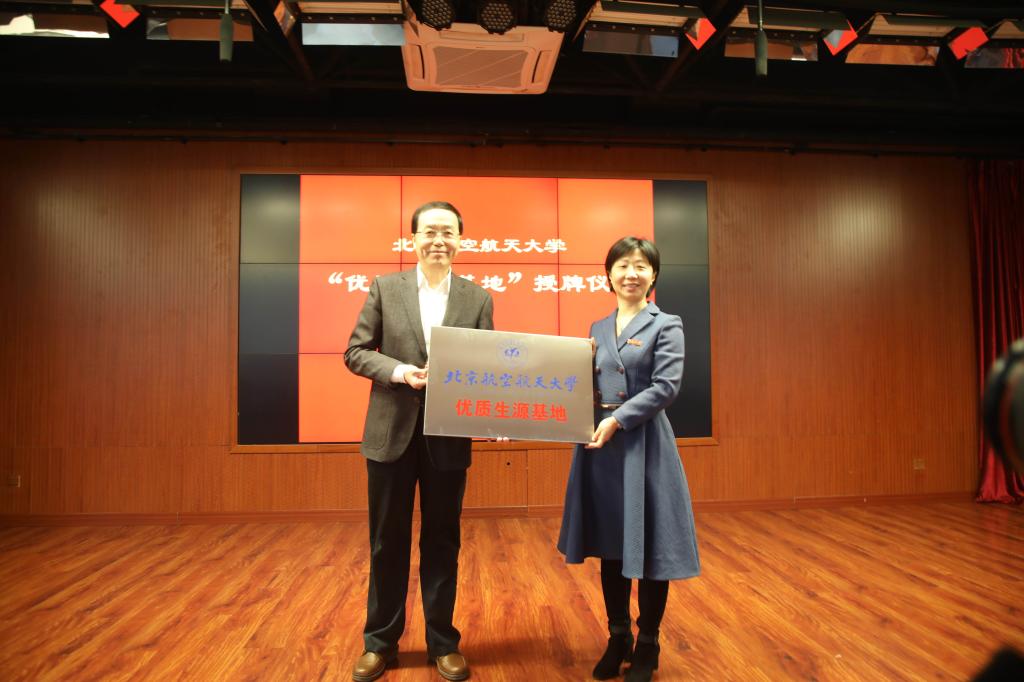 输送更多的优秀人才。座谈会后双方进行了“北京航空航天大学优质生源基地学校合作协议书”的签订和“优质生源基地”授牌仪式。