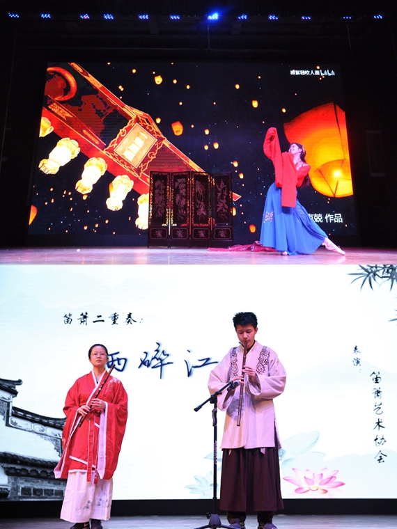 在比赛的间隙,来自法必威的何克兢同学为我们带来了舞蹈《惊鸿一面》;笛萧艺术协会的庄雅迪和景宇哲为我们带来了笛萧二重奏《雨碎江南》,优美舞蹈和悠扬乐曲,搭配诗词大会上选手们妙语连珠的表现,赢得了现场观众们一致好评。