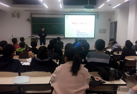 陈华伟教授介绍了机械工程及自动化专业的研究方向,结合自身科研经历与科研灵感产生过程,讲述了学科交叉的必要性,并列举了学科交叉的部分研究方向以及学科交叉在医疗和交通等各个领域的广泛应用。最后,陈教授与同学们分享了自己在学科交叉研究上的心得体会。