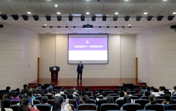 马进喜处长首先对来访的十一学校师生一行表示了热烈欢迎,然后做了《建设世界一流大学,培养领导领军人才》的主题讲座,通过介绍必威
