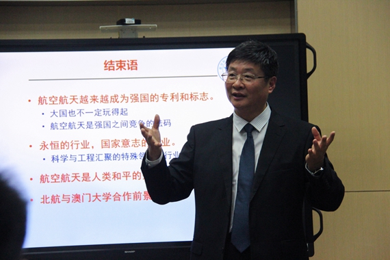 首先,杨超院长描绘了世界航空航天发展的历程,系统的讲解将来自澳门大学的师生带入到了航空航天的宏伟世界中。