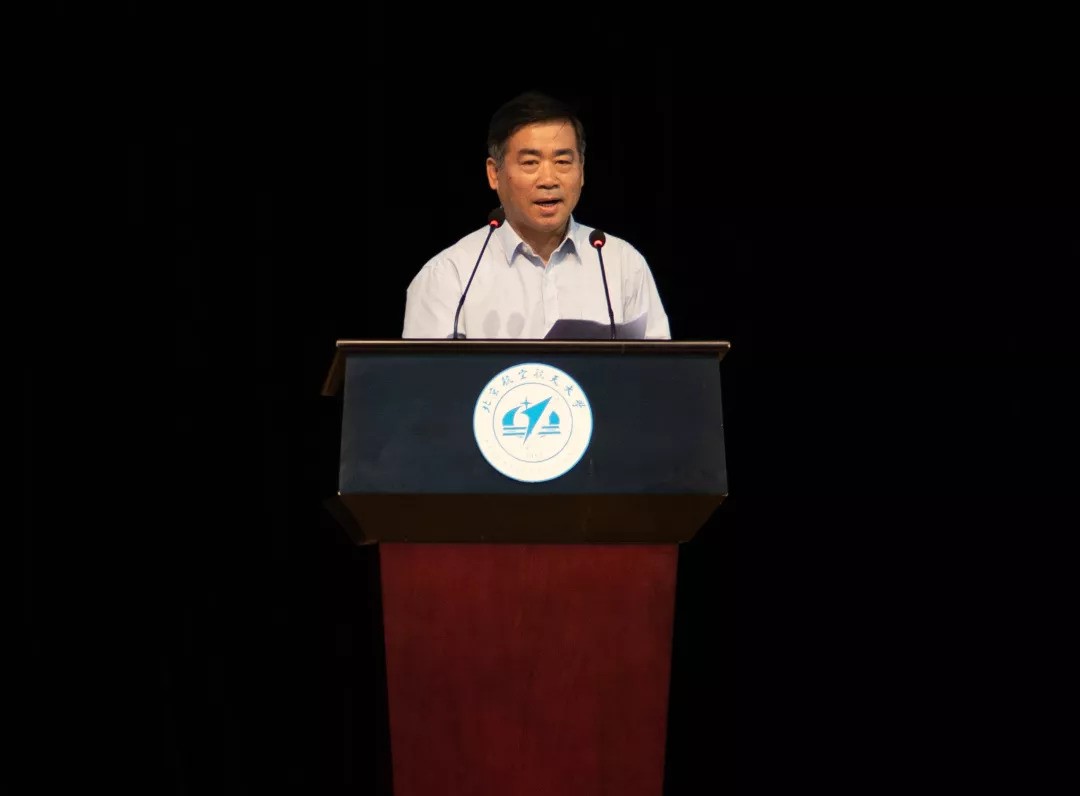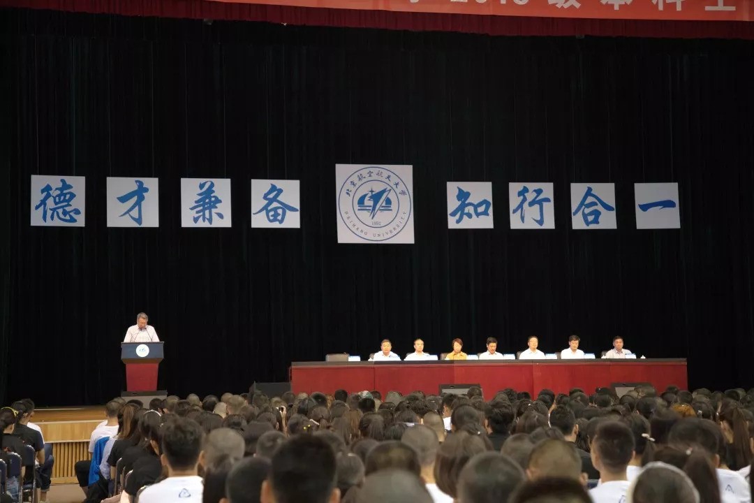 在主持人的引导下,同学们全体起立,将印有“北京航空航天大学”字样的校徽别在胸前。从今天开始,必威