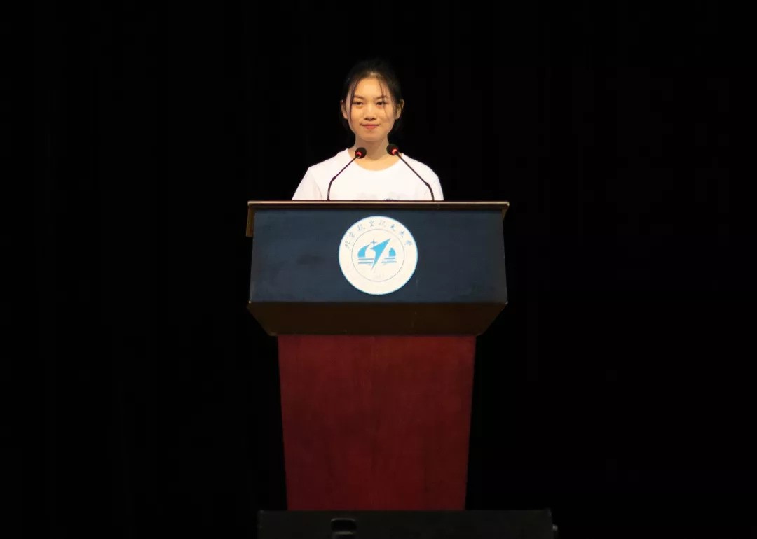 来自士谔书院的罗梦兰同学作为2018级新生代表发表致辞。罗梦兰同学曾参加世界脑力锦标赛获“世界记忆大师”称号,同时也曾获得全国优秀共青团员、全国最美中学生等荣誉称号。在致辞中,她提到自己对必威