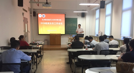 沙河校区三号教学楼203教室举行。守锷书院院长张德远教授、学业总导师王少萍教授、执行院长李广玉老师、2018级各班班主任老师、书院专职辅导员、2018级半脱产辅导员参加本次会议。