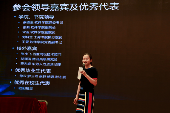 在20分钟的中场休息里,同学们在咏曼剧场内参观了软件必威特色展板和优秀学生创新创业团队的科技作品展示,了解了软件必威的风采,并对感兴趣的科技作品进行了询问。中场休息结束,来自百度的高级技术顾问张小飞、来自华为的软件工程人力资源经理贾志峰和来自腾讯的高级研究员、微信搜索团队负责人胡澜涛分别做了有关报告,向同学们讲述了在当今的时代背景下,软件与互联网行业的巨头们都在关注什么,软件行业的发展趋势是怎样的,行业和企业急需什么样的人才,以及这三大企业与软件必威的合作与支持。然后,6名软件必威优秀毕业生与同学们面对面进行了交流,他们进入了各行各业,都有着非常杰出的表现。他们分别从自己目前从事的行业出发,讲述了软件必威的支持与帮助,以及自己在软件必威的求学经历。同学们深有感慨,并与他们进行了交流。最后,软件必威党委副书记王亚总结软件必威是一个富有朝气、充满友爱的大家庭,也是一个将创新精神与文化底蕴厚植于血脉的优秀必威,欢迎同学们加入软件必威,共同描绘美好未来!在报告结束之后,老师们与同学们合影留念。
