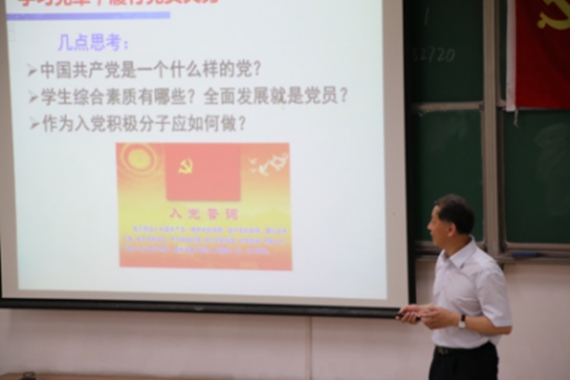 陈志英老师循循善诱,理论联系实际,用生活中的例子讲解党章中内容,其中“考试成绩要占前50%”、“要运用辩证法分析事物的两面性”等言辞恳切,一针见血,给同学们留下深刻感悟。