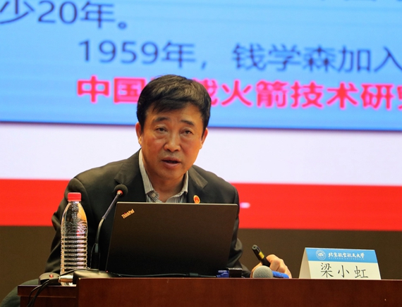 在谈到航天人与航天精神时,梁老师介绍了中国航天发展史、四大法宝和两大基因,并通过讲述中国航天领军人物、普通工作者和潜击战略导弹团队的故事进一步展示了中国航天精神的核心内涵。最后,梁老师还和同学们分享了自己的一首诗《赢在顽强》,以此勉励同学们要开阔视野,保持紧迫,提高本领,追求卓越,为实现中华民族伟大复兴而努力奋斗。