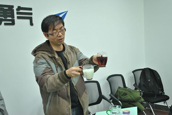 正所谓授之以鱼更要授之以渔,调饮课是学习茶文化不可或缺的课程。黄大老师和彭敬老师向我们具体详解了各种泡茶的知识。诸如公道杯的来源、茶杯的握取、泡水的水温、倒茶时壶口的高低......泡茶的流程的讲究彰显了中华文明的传统礼仪,也在不经意间向同学们传承了中华的茶文化素养。一壶壶香茶出炉,道出了清饮阿萨姆的浓郁口感,诱出了英式奶茶的甘甜风味。冰红茶、鸳鸯奶茶也都悉数出场,给同学们带来的一场品茶盛宴。