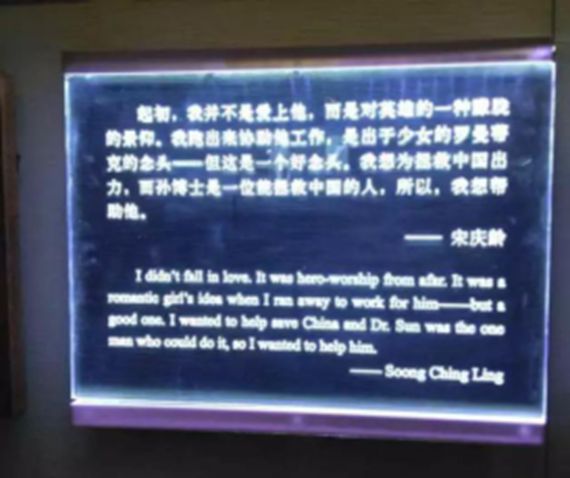 后来同学们来到了宋庆龄同志的生平展。从入口进入,首先见到的是宋庆龄同志的雕塑,墙壁上有金色的配字:“宋庆龄伟大光荣的一生——邓小平”,进入展馆,有志愿者讲解员为同学们介绍了宋庆龄同志的一生。