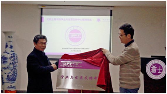 常务副院长曹庆华和士嘉书院执行院长马锐为士嘉书院学业与发展支持中心揭牌,宣告中心正式成立,并给中心选拔出的“助消化课堂”首批讲师颁发聘书。