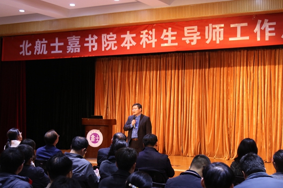 随后,书院院长姚仰平在讲话中强调了导师在思想引领的重要性,并呼吁导师要在今后的导学活动中多向学生传递正能量。姚院长还对导师的学术引导职责提出自己的看法,强调了创新能力培养的重要性,并提出了本科生导师与研究生导师的区别,希望导师们在今后的导学活动中对学生做正确的引导。