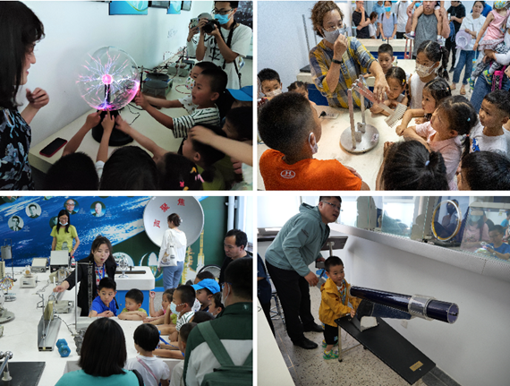 中午11时许,博物馆的参观活动在集结声中结束,带着激动与不舍,一行人踏上了去往沙河校区的大巴。轻风柔和,阳光灿烂,下午13时,在沙河食堂享用过可口的饭菜后,队伍一行来到北航物理演示实验中心,在物理世界中感受力、电、磁的神奇。演示过程中,亲子们上手体验电磁炮发射,进入法拉第笼体验静电屏蔽的效果,触摸辉光球观看绚丽多彩的光芒。精彩的讲解时不时引发参与教职工和讲解老师围绕演示现象的深入讨论,无论是小朋友还是大朋友,都表示在这次参观中收获颇丰。